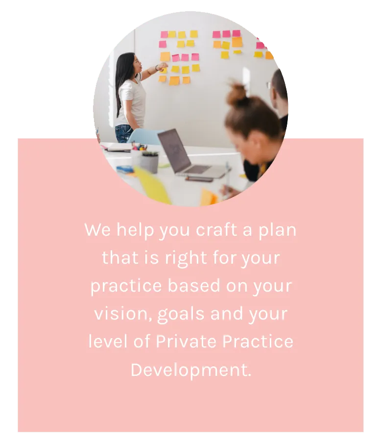 Monthly group Kick-Start Planning Sessions for new members, in which we'll devise a 6 week Plan of Action relevant to your Level of Private Practice Development.